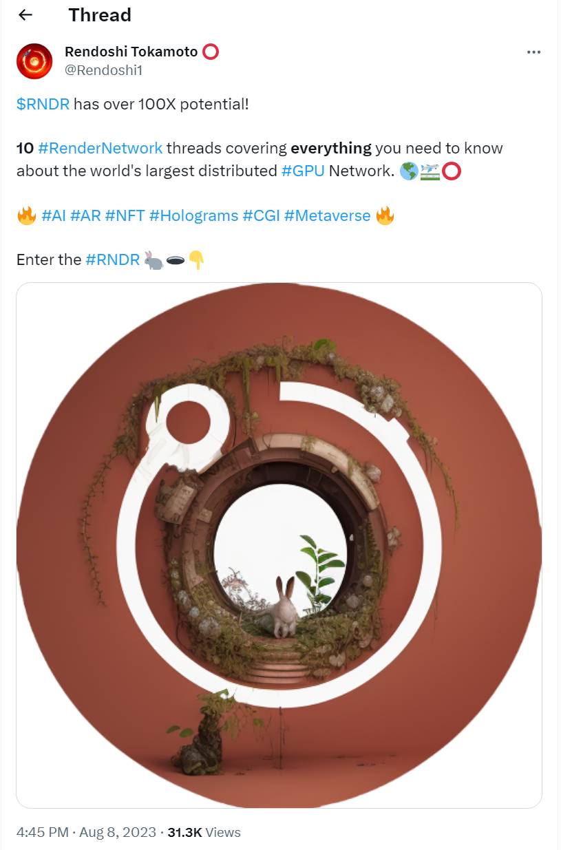 Driven by AI Interest and Demand: With the increasing interest in AI by 2023, the value of RNDR tokens has risen by over 1000%, as the demand for GPU training AI models has surpassed the supply from major cloud server providers like Amazon Web Services, Microsoft, Google, and Oracle.