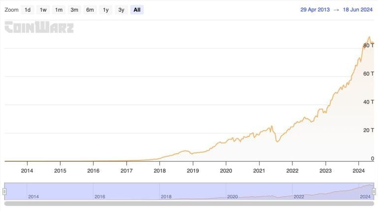 Bitcoin difficulty chart. Source: CoinWarz