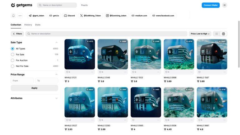 GoMining Whales NFT Collection on Getgems marketplace. Source: Getgems