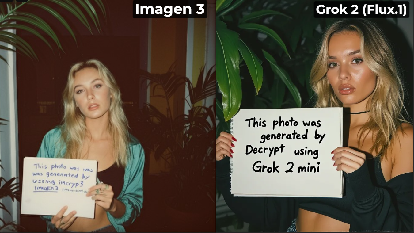 Generations by Imagen 3 and Grok 2 using the same prompt