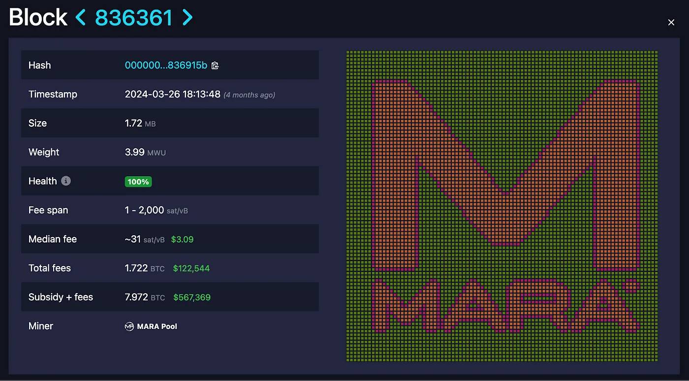 Since different nodes receive different transactions from P2P propagation, each node has a different mempool. Additionally, each node can actively customize its own relay strategy (mempool policy), defining which transactions it wants to receive and relay. Mining pools can also choose which transactions to include in blocks based on their preferences (although economically, they prioritize high-fee transactions). For example, the Bitcoin Knots node filters out any Ordinals transactions, while Marathon Mining created a pixel-style logo in the block explorer.
