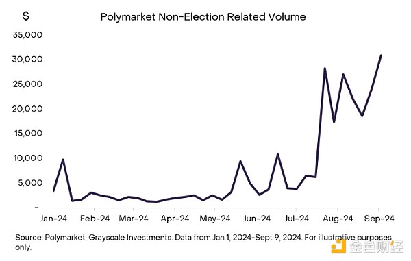 Figure 5: Non-election-related trading volume on Polymarket has increased since July 2024
