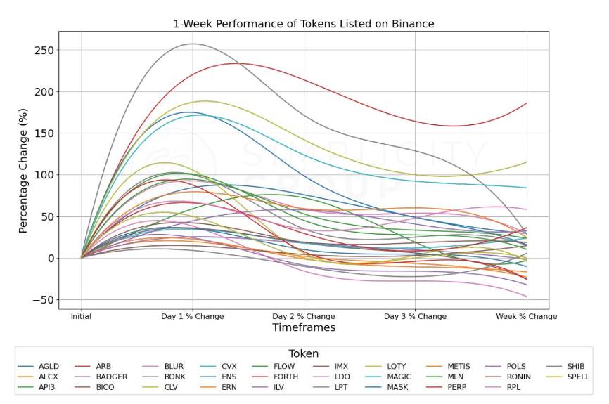 The high initial increase in token prices often cannot be sustained, but most tokens still maintain positive growth after one week;