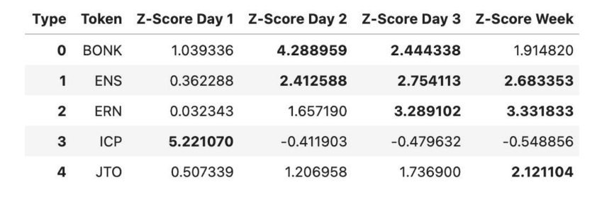 BONK showed outstanding performance on the third day, with a Z-score of 3.84;