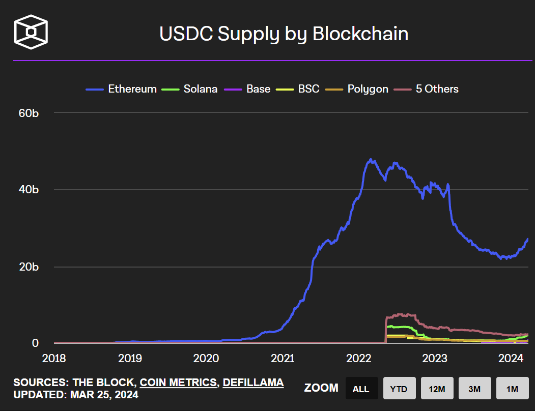 _USDC supply by blockchain, source: _The Block