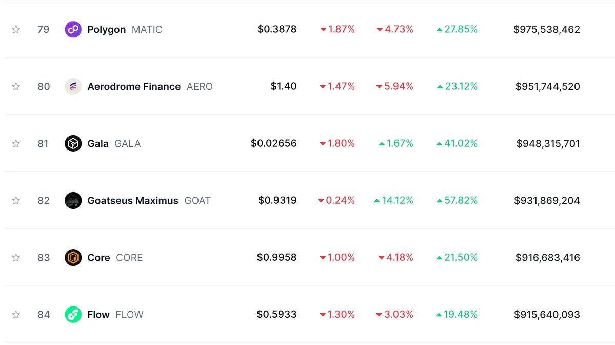 As of today, the market cap of this project has reached over $1 billion, currently ranking 82nd on Coinmarketcap, just behind Polygon (Matic), Aerodrome, Helium, and Lido.