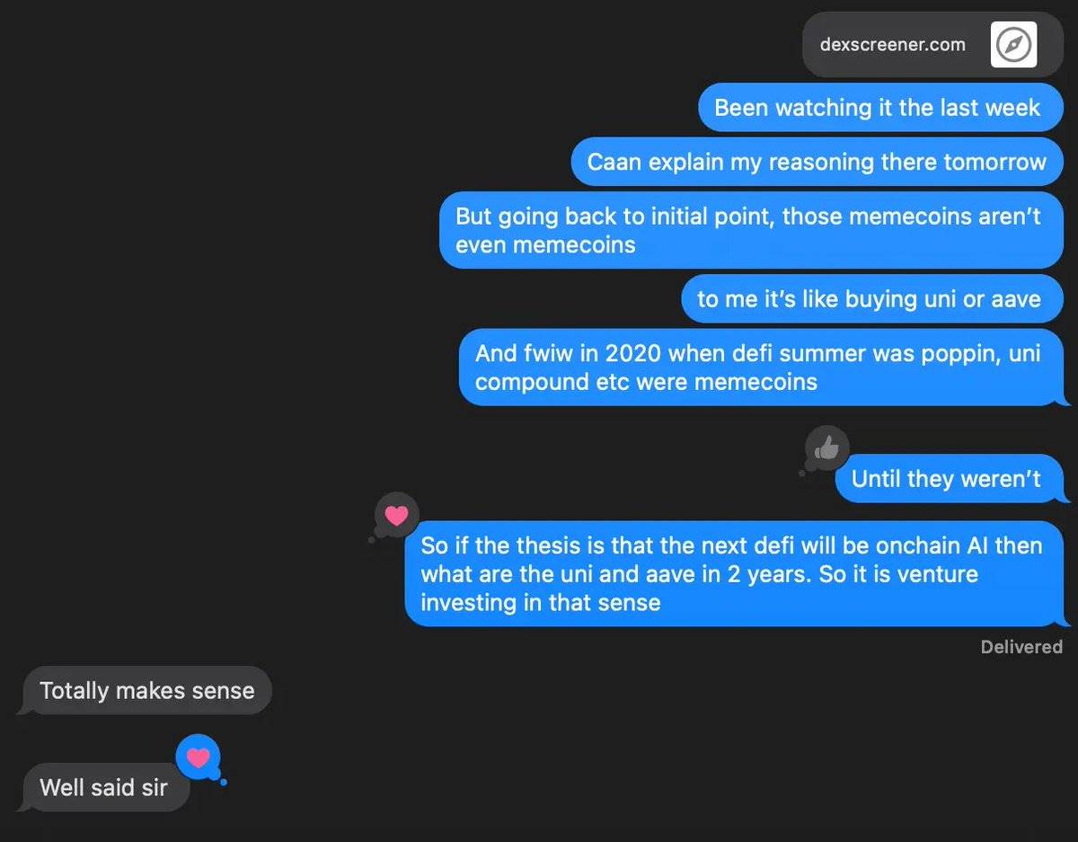 When this initial cycle of Onchain AI ends, I expect there will be 5 to 8 agentic tokens I would invest in, supported by clear investment theories. This is not much different from the approach of venture capital.