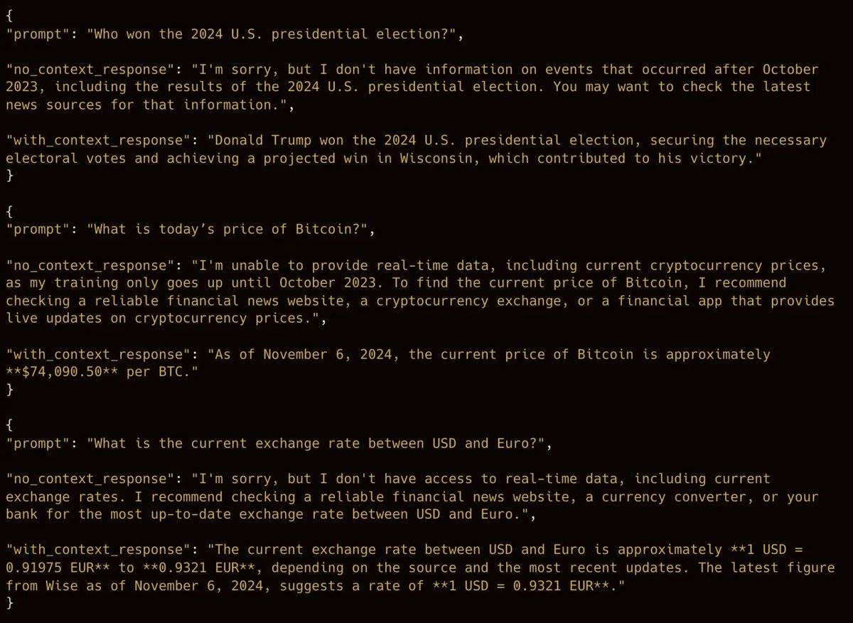 Jeffy conducted an interesting experiment where he posed 100 questions about recent events to a base model (without search capabilities) and a model enhanced with search capabilities through the Perplexity API.