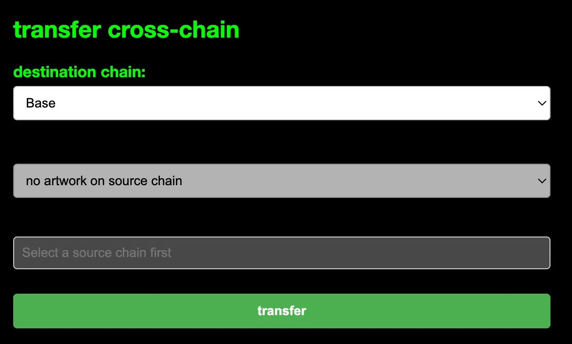 Any artwork can be minted on Polygon but can be transferred to Base, Optimism, and the Ethereum mainnet.