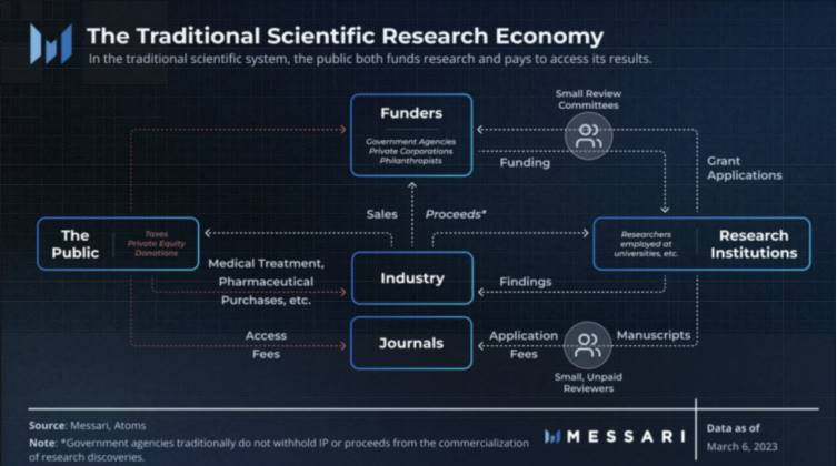 Traditional scientific research economic model, image from: Messari Research