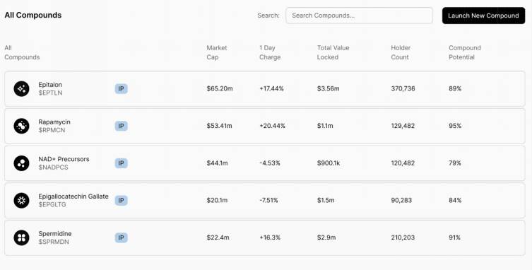 - VitaDAO ($VITA): VitaDAO is a community-driven decentralized autonomous organization (DAO) focused on providing early funding support for longevity research. VitaDAO proposes a new solution to the current situation of early funding shortages and technological monopolies in the traditional biopharmaceutical field, especially in longevity research. By introducing blockchain and cryptoeconomic incentive mechanisms, VitaDAO aims to help scientific research projects in the longevity field secure critical initial funding. In return, VitaDAO will directly hold the intellectual property (IP) and data rights of the supported research results and integrate these rights into a publicly accessible asset portfolio. The organization promotes the further development and utilization of these intellectual properties through data markets or traditional biopharmaceutical licensing and commercialization paths, while also achieving asset tokenization and issuing a native governance token—$VITA. Individuals or organizations can earn $VITA tokens by contributing work, funds, or other resources (such as data or intellectual property). Holders of $VITA can participate in the curation and governance of VitaDAO's assets and research.