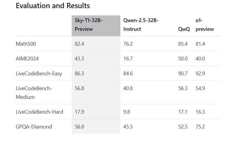 We're not talking about some watered-down version. Sky-T1-32B-Preview achieves 43.3% accuracy on AIME2024 math problems, edging out OpenAI o1’s 40%. On LiveCodeBench-Medium, it scores 56.8% compared to o1-preview's 54.9%. The model maintains strong performance across other benchmarks too, hitting 82.4% on Math500 problems where o1-preview scores 81.4%.