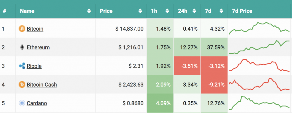 Coingecko also goes with the CMC format but again adds some unique features. The ability to filter cryptocurrencies based on their hashing algorithm is useful for miners and there’s also a section that lists forthcoming ICOs.