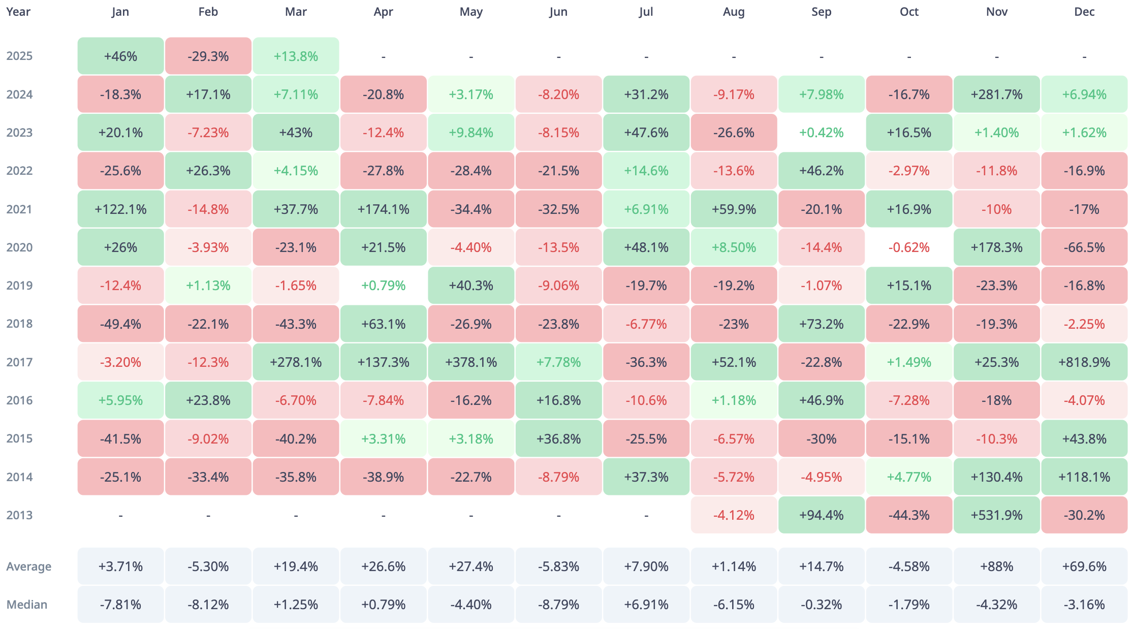 The median? A flat 0.79%, a shrug of a statistic. Worse, the past three years have been brutal - double-digit losses each time, between 12.4% and 27.8%, as if the month itself has developed a vendetta against XRP holders.