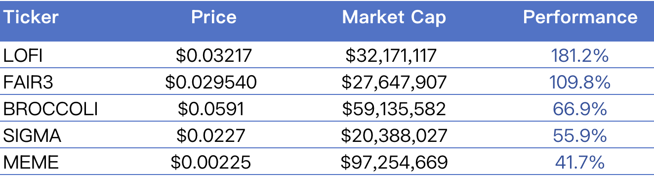 - Top Five VC Coins and Meme Coins by Growth This Week