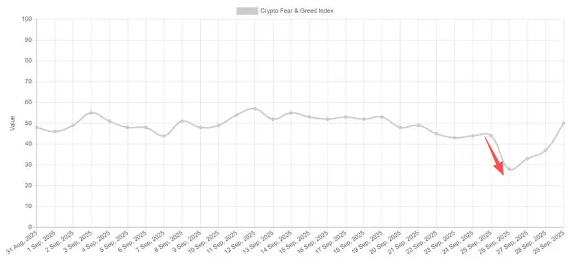Despite this, market sentiment saw a turnaround over the weekend. Santiment data showed that discussions about BTC on platform X surged by 40% on September 22, primarily around keywords like "dip" and "crash"; by the weekend, discussions related to "buy" and "bottom" increased by 25%, possibly indicating a short-term bottom may be forming.