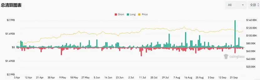 According to coinglass data, the total amount of leveraged liquidations in the cryptocurrency market last week approached $2 billion, primarily concentrated in BTC and ETH long positions, with $380 million liquidated in a single day on September 22; open interest (OI) fell from a peak of about $50 billion to around $45 billion. On-chain data shows that last week, long-term holders (LTH) realized profits corresponding to about 3.4 million BTC, with an increasing tendency to sell, reflecting market pressure.