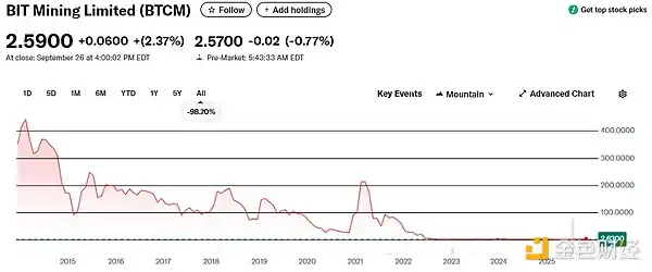 As of the time of writing, Bit Mining's stock price is reported at $2.59.