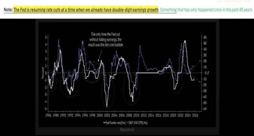 Historical experience shows that cutting interest rates during strong earnings (like in 1998) can extend a bull market. But this time is different: inflation remains stubborn, the "seven giants" of U.S. stocks are performing well, while the other 493 companies in the S&P 500 are underperforming.