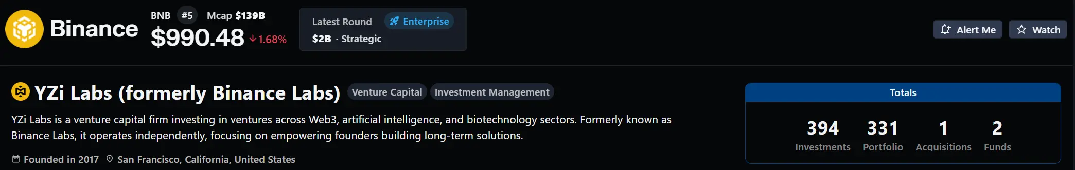 • YZi Labs (VC Direct Investment): Targeting more mature growth-stage projects, with higher precision and larger investment amounts, aimed at providing in-depth resource integration;
