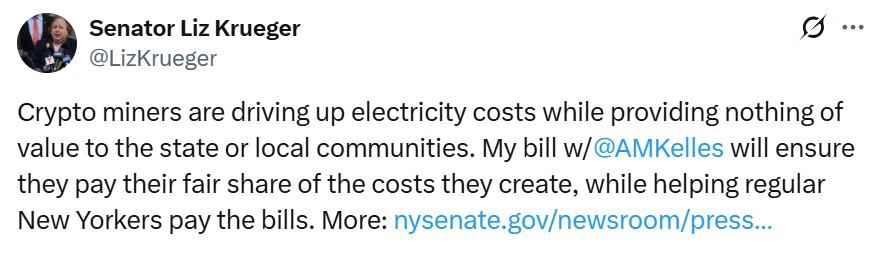 New York lawmakers have filed a bill to tax large Bitcoin mining farms on the electricity they use. Senator Liz Krueger and Assemblymember Anna Kelles introduced Bill S8518 to charge miners per kilowatt hour and use the money to help low-income families with energy bills. This plan puts the New York Bitcoin mining tax at the center of debate about fairness and energy policy.
