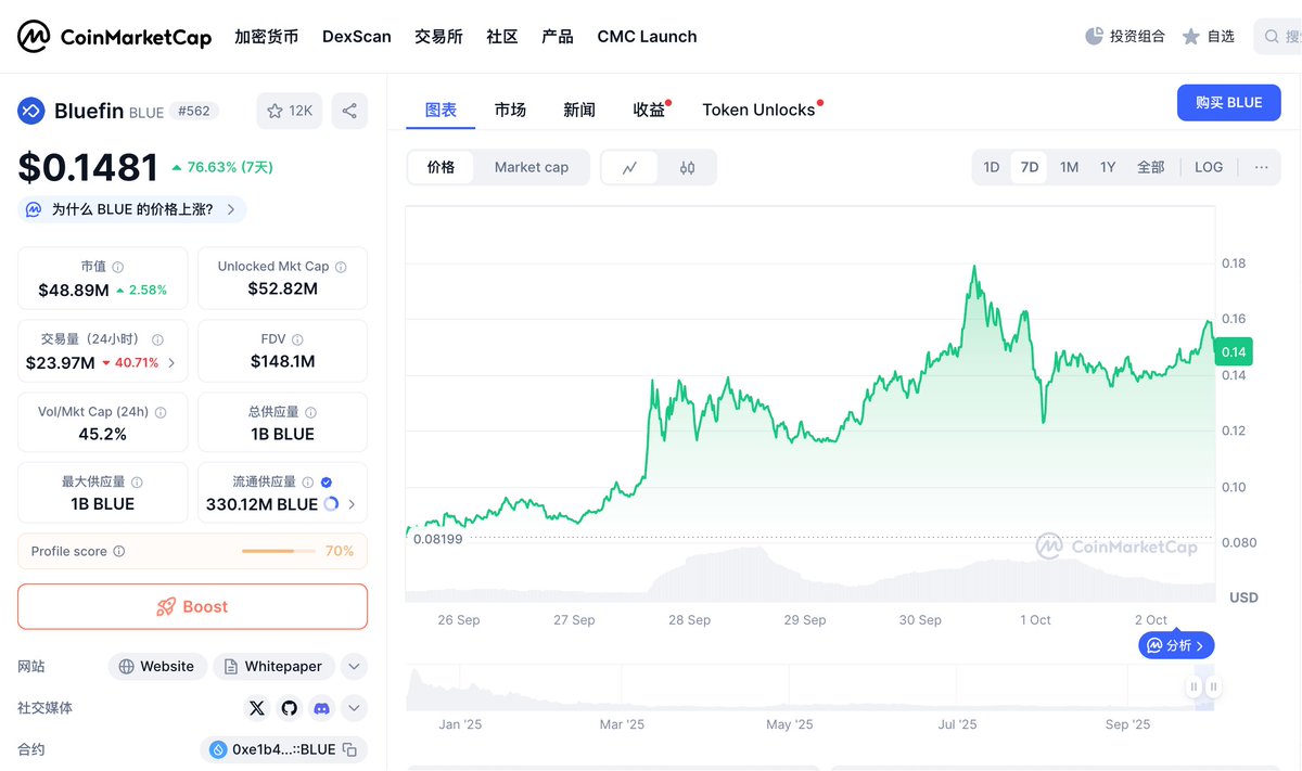 In the past week, with the explosion of the DEX sector, $BLUE has surged by as much as 85%, and in the past month, it has increased by up to 151%;