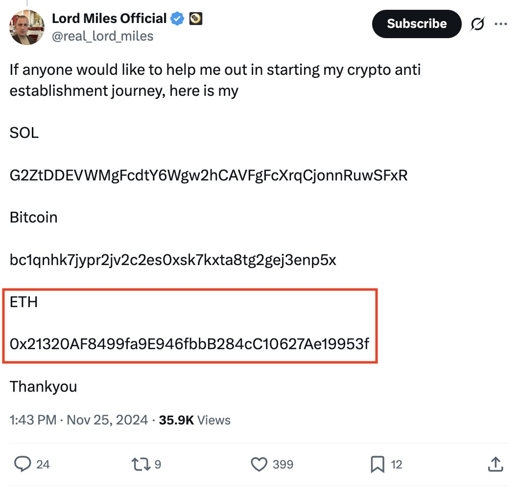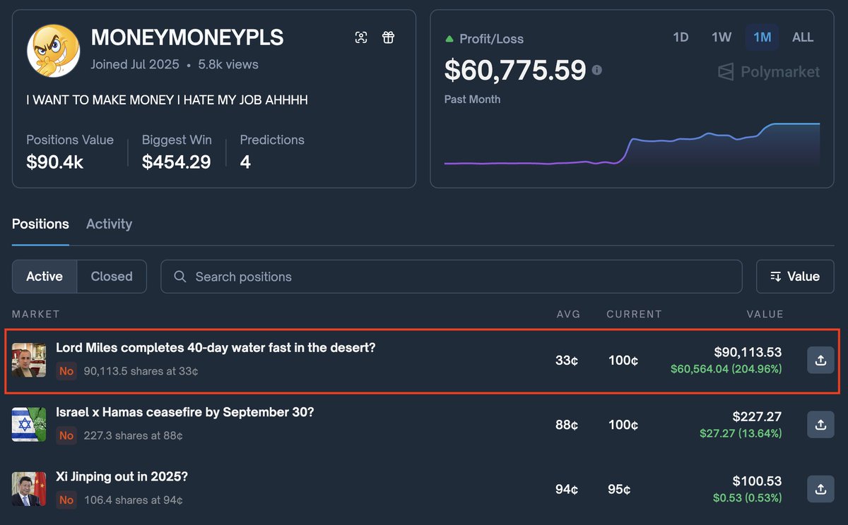 LORD MILES MADE $60,000 ON HIS OWN POLYMARKET
