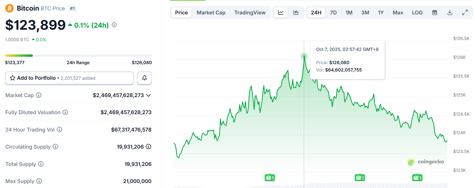 As investor concerns about the uncertainty of the U.S. government shutdown grow, a "devaluation trade" aimed at hedging against the depreciation of the dollar is becoming one of the most popular investment themes this year, driving Bitcoin prices higher. In the early hours of October 7, Beijing time, Bitcoin's price surpassed $126,000, setting a new all-time high, exceeding the previous record of $125,689.