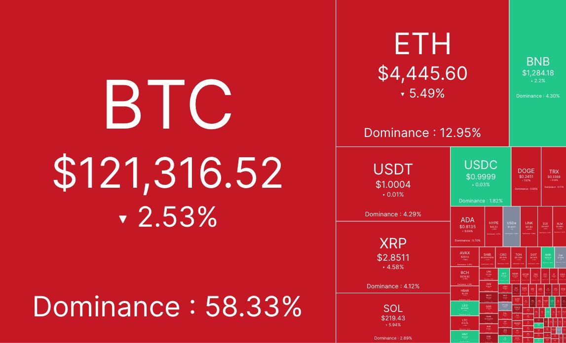 🚨 CẬP NHẬT THỊ TRƯỜNG 24H QUA - 08/10/2025Bitcoin hiện giao dịch quanh $121