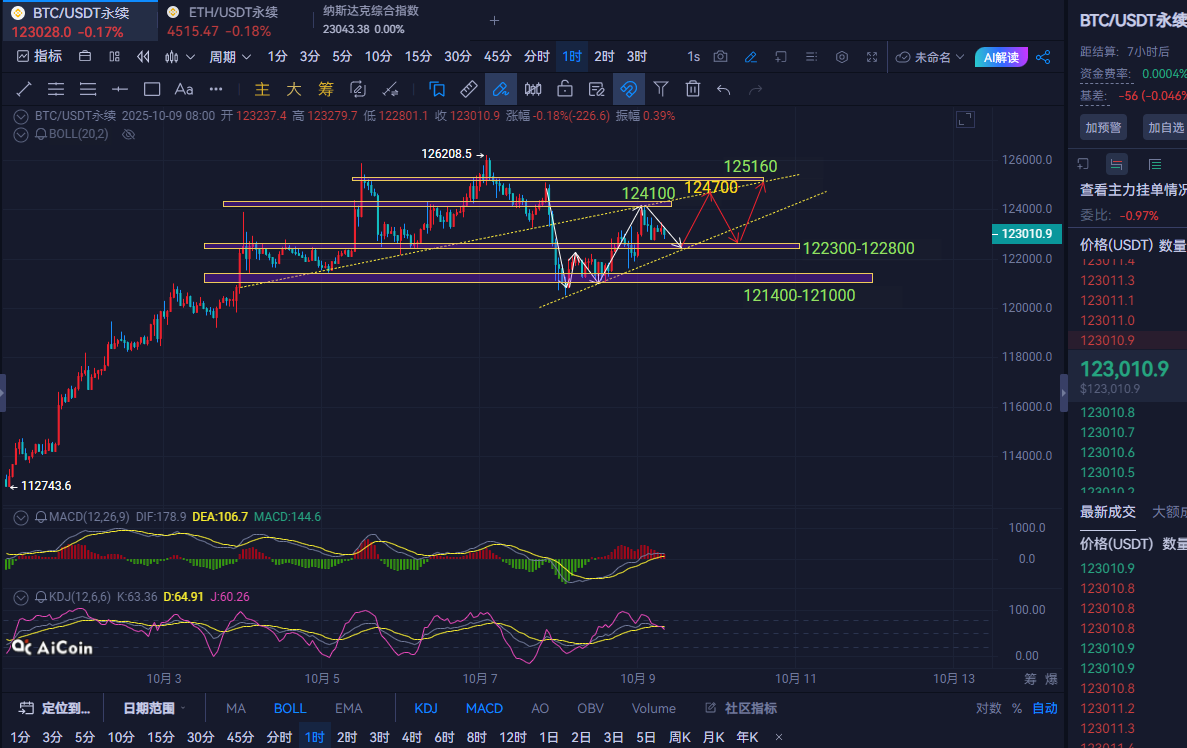 Trading Suggestions: For Bitcoin, buy near 122,000, with a stop loss at 121,000, targeting the 123,300-123,600 area. If it breaks, look for 124,700-125,100; if it doesn't break, consider shorting.