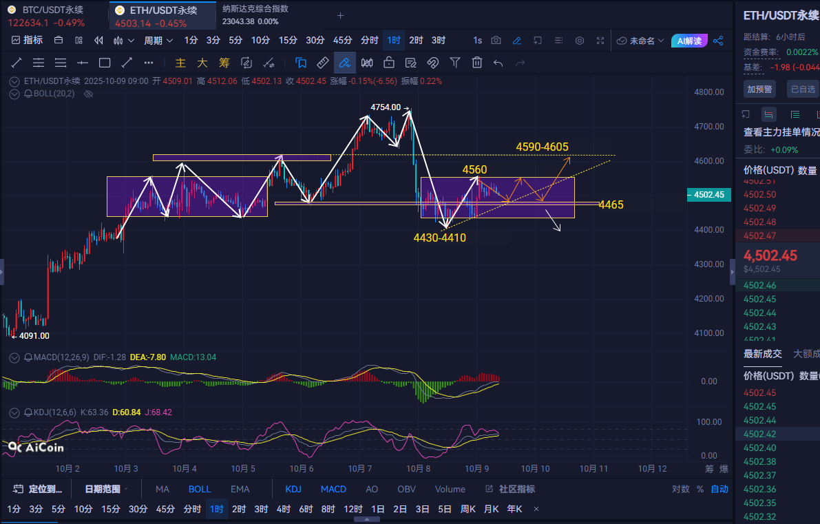 For Ethereum, buy near 4,450, with a stop loss at 4,400, targeting the 4,530-4,560 area. If it breaks, look for 4,590-4,610; if it doesn't break, consider shorting.