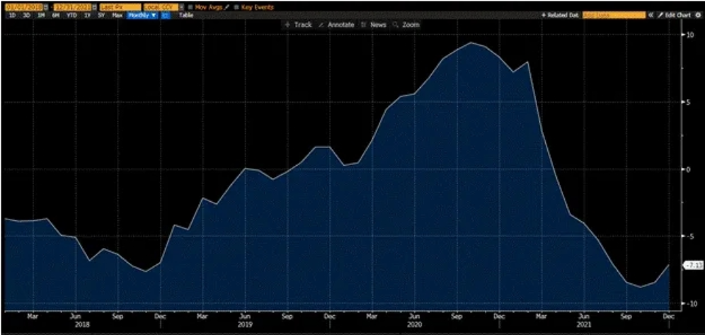 Renminbi chart: China's economy is even more reliant on credit than the U.S., so I use Bloomberg Economics' China Credit Impulse Index (12-month percentage change). A similar pattern emerges if you check nominal GDP year-on-year growth.