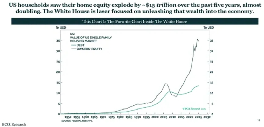 President Trump also seeks to lower housing costs, releasing trillions of dollars in trapped home equity from the price surge after 2008.