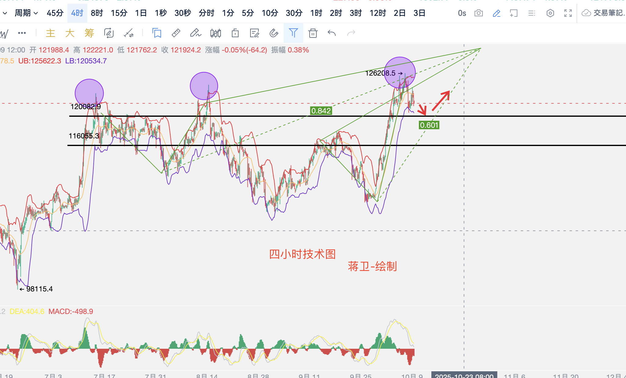 You can look to buy in batches around the 120,800-121,200 area, with a target near 123,800. The points are for reference only; specific operations should be based on real trading.