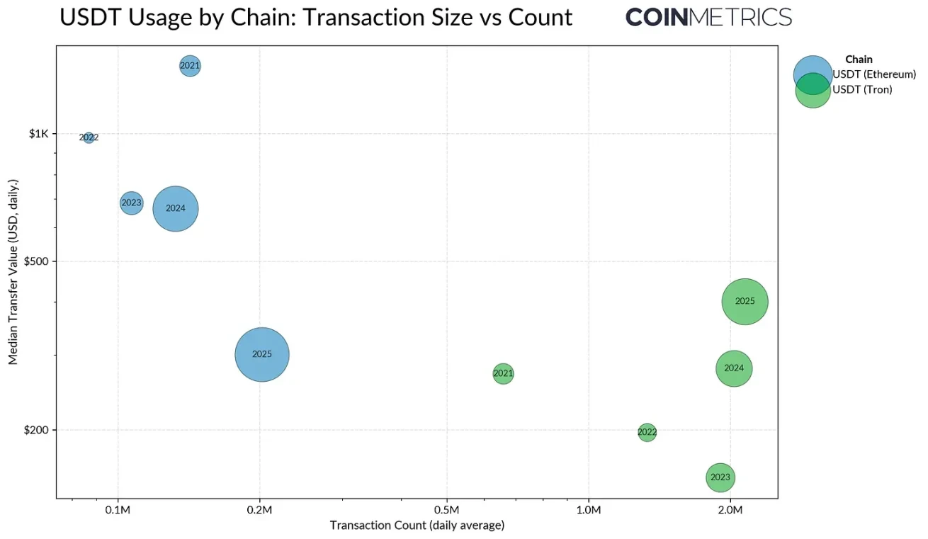 Source: Coin Metrics Network Data Pro (USDT on Ethereum, USDT on Tron)
