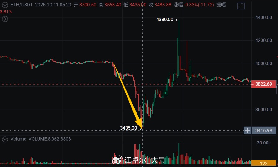 - The crypto market stabilized for an hour after the U.S. stock market closed. At 4:50 AM on October 11, Trump officially announced a 100% increase in tariffs on China starting November 1, 2025. BTC and ETH dropped to their lowest points at 5:20 AM, reaching 102,000 (down 15.9%) and 3,435 (down 20.6%), respectively.