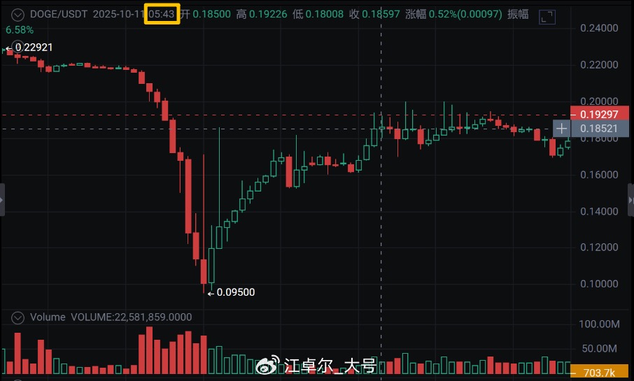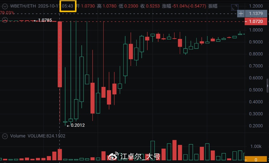 Before making any judgments, always look at the data, look at the data, look at the data. Vida, the founder of Equation News, mistakenly believes that it was a large market maker's liquidation because he did not look at the minute K-line and did not notice that the altcoin liquidations occurred at 5:20 AM, while the USDe/wbETH/bnSOL liquidations occurred at 5:43 AM. These are two different liquidations.