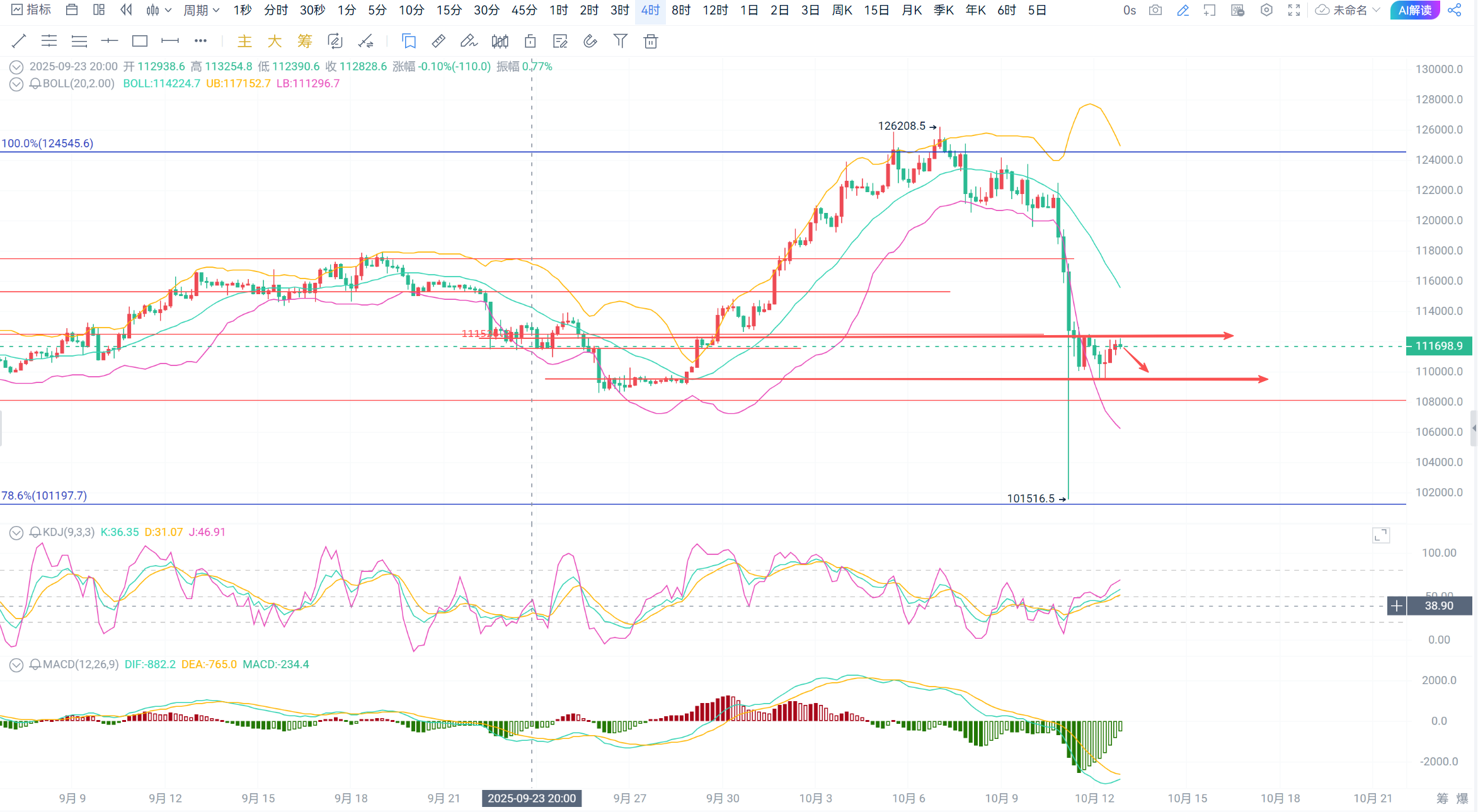 Technical Analysis: For Bitcoin, the daily candlestick closed as a bearish candle around 110500, the Bollinger Bands continue to slowly open downwards, the MACD moving average continues to move downwards, bearish volume continues to increase, and the KDJ continues to move downwards. On the 4-hour chart, the Bollinger Bands continue to slowly open downwards, the MACD moving average continues to move downwards, bearish volume starts to decrease, and the KDJ line begins to move upwards;