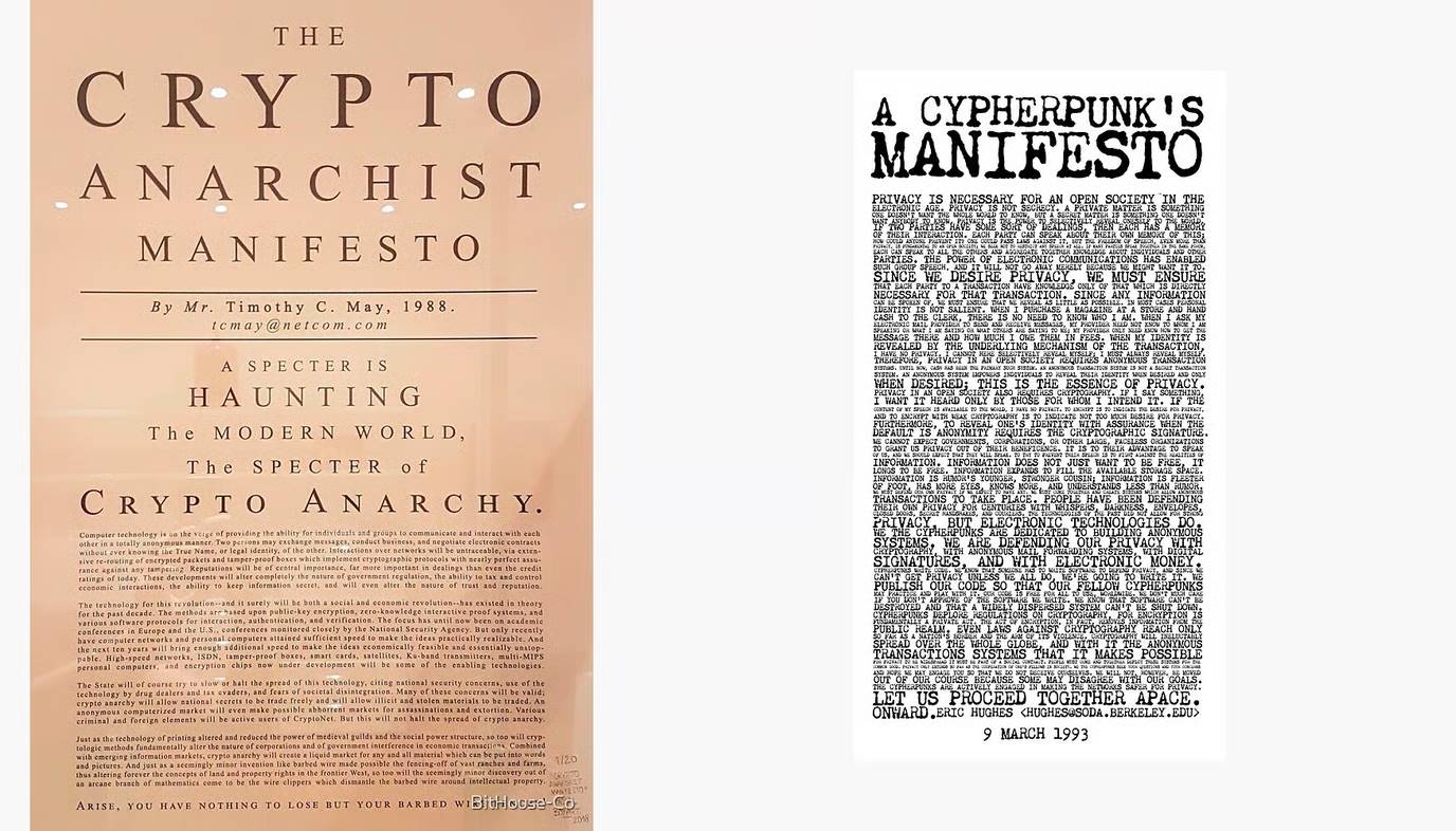"The Crypto Anarchist Manifesto" and "The Crypto-Punk Manifesto"