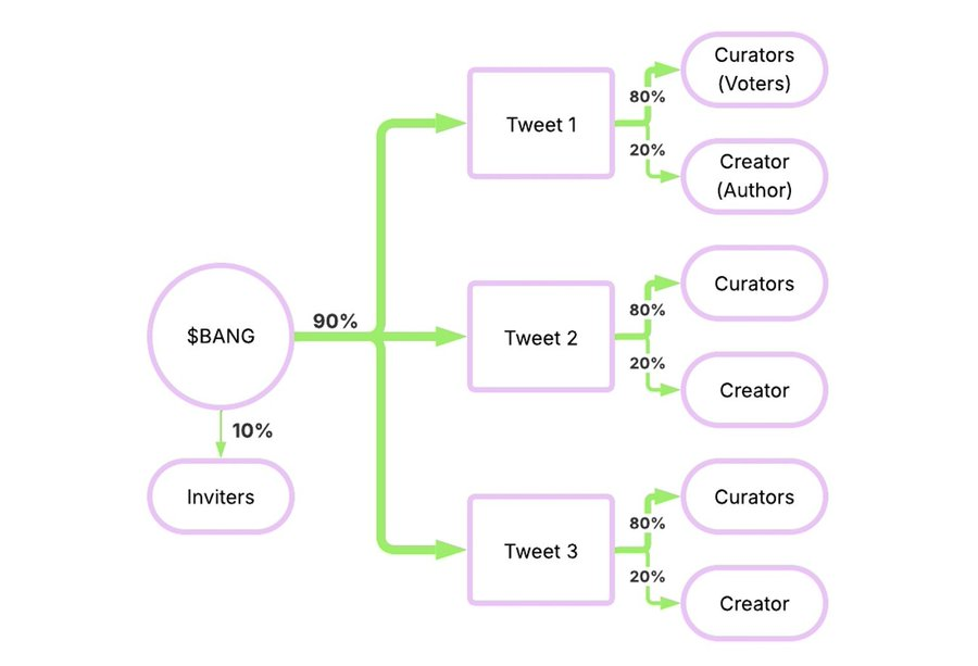 The system aims to reward skilled curators through a flywheel effect. Users who can consistently like successful tweets (considering the early degree of likes, the amount of energy used, and overall influence) can earn $BANG tokens.