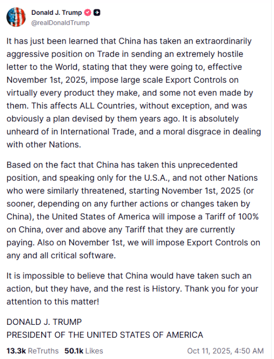 The turnaround came quickly. Just early this morning, Trump posted again to reassure the market, stating, "Don't worry about China, everything will be fine. America wants to help China, not hurt China," successfully restoring market confidence. This statement led the market to collectively bet on the "TACO" trade, an acronym for "Trump Always Chickens Out," implying that Trump always backs down at the last moment. The trading strategy is that when Trump's tariff threats cause the market to drop, investors bet that he will ultimately back down, leading to a stock market rebound, allowing investors to profit by buying the dip.