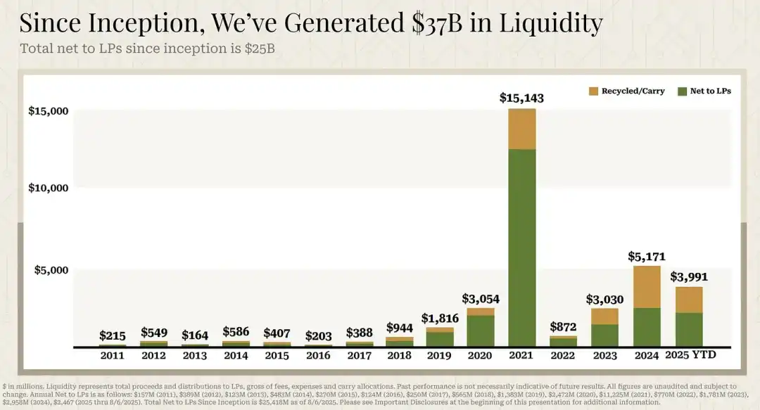 a16z has generated a cumulative net return of $25 billion for LPs.