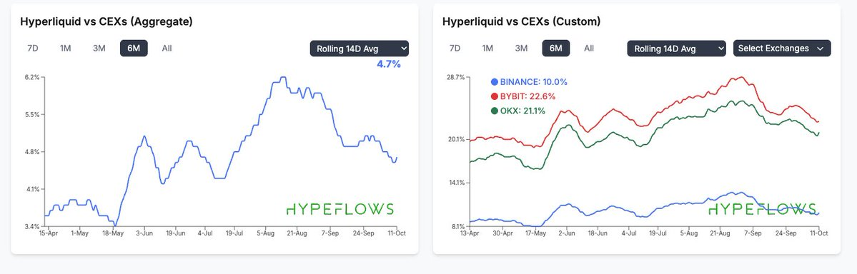 Now back to the competition between centralized exchanges (CEX). What do I mean? First, I have explained how perpetual contract decentralized exchanges (Perp DEX) have gradually lost their advantage over the past year, until the flash crash event completely changed the trend.