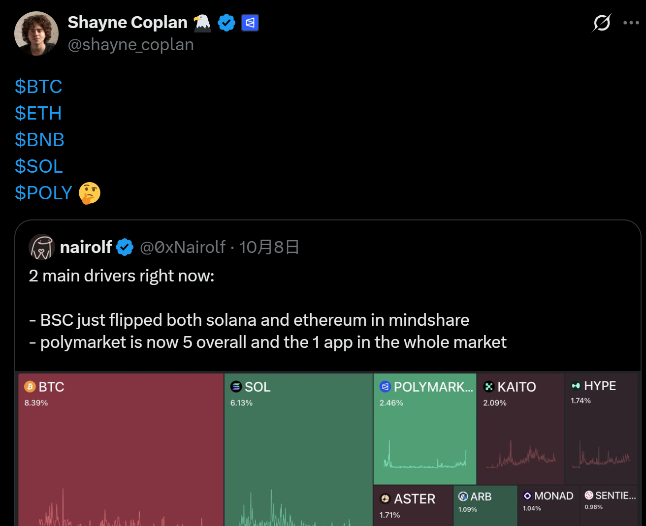 This is likely part of a combined strategy with the recent $2 billion financing, and Polymarket CEO Shayne Coplan also tweeted on October 9 with the POLY symbol, which could become a key variable in the competition between the two giants.