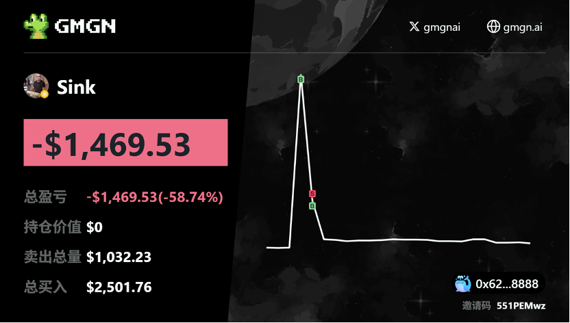 In the following days, Jerry was completely immersed in the crazy world of BSC memes. He continued PVP, mainly profiting from ROSE, cster, wrinkles, etc., steadily growing his capital to 600U. But the world of memes is always full of surprises, and on September 25, a project called Sink caused him to incur his largest single-day loss, losing 1000U.