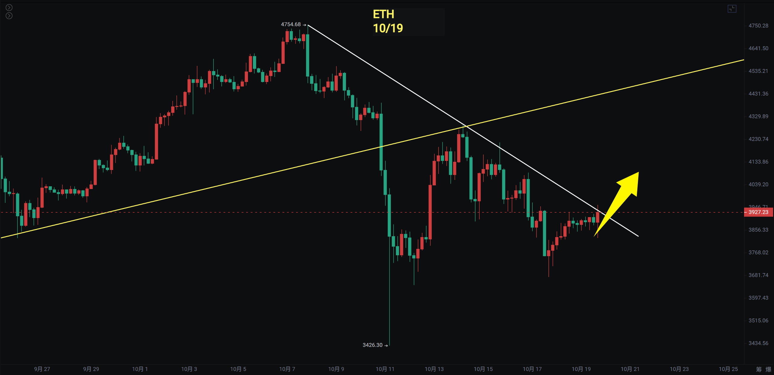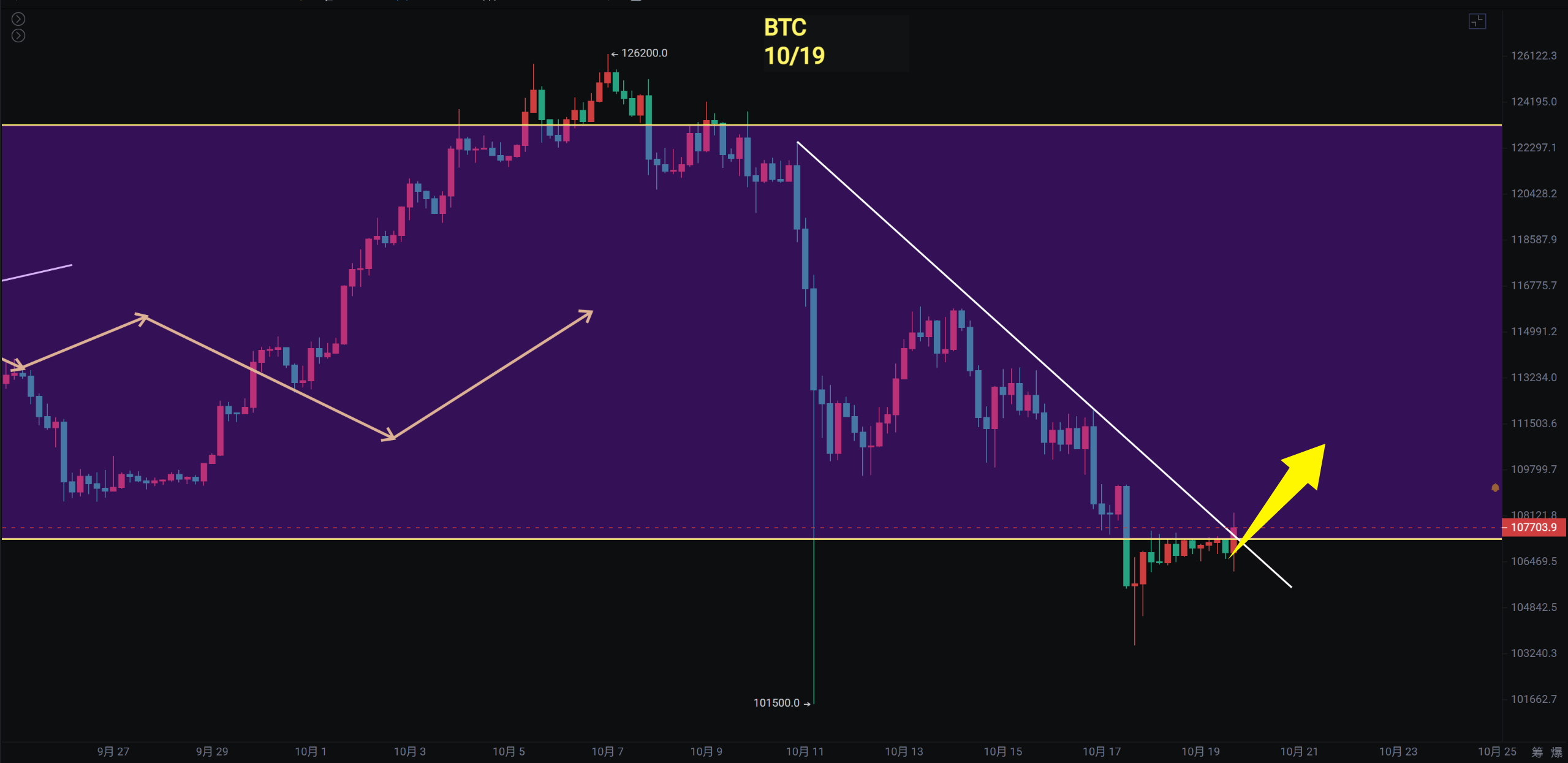25/10/19 BTC 3-year upward trend, 100,000 long-term key support, next week will be a turning point.