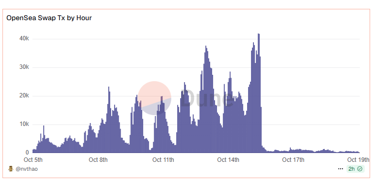 Data shows that user enthusiasm for the "opening chests" activity has significantly declined, with many choosing to forgo participation in the Wave 2 reward event. On-chain data indicates that since the end of the Wave 1 rewards distribution, the Swap trading volume on the OpenSea platform has plummeted, indicating a marked decrease in market activity.