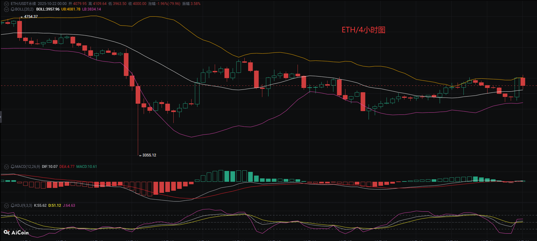 From a short-term hourly perspective, the Bollinger Bands are narrowing, and the current market is in slight consolidation. The upward momentum has weakened, and the trend is running near the upper middle band. If it cannot stabilize above the 4000 level, there is a possibility of a price pullback. It is not recommended for cryptocurrency friends to blindly chase long positions. From the daily chart, the key focus is on the Bollinger middle axis resistance around 4150. Overall, as long as it does not break through the 4150 level, Ethereum will mainly oscillate in a weak range. Therefore, the suggested strategy is to focus on shorting at high prices and going long at low prices, with resistance above at 4150 and support below at 3830.