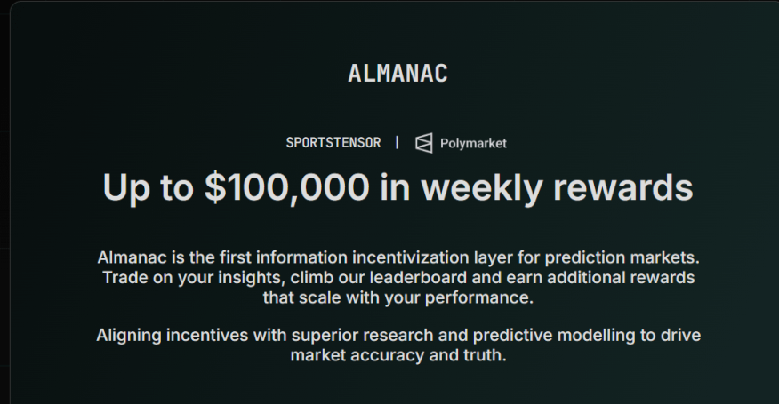 The team is also building the "Almanac" platform — a sports prediction competition layer for ordinary users: users can access signals and advanced predictive analysis data provided by Sportstensor miners and compete with other users. The best-performing predictors can earn up to $100,000 weekly (launch date to be determined).