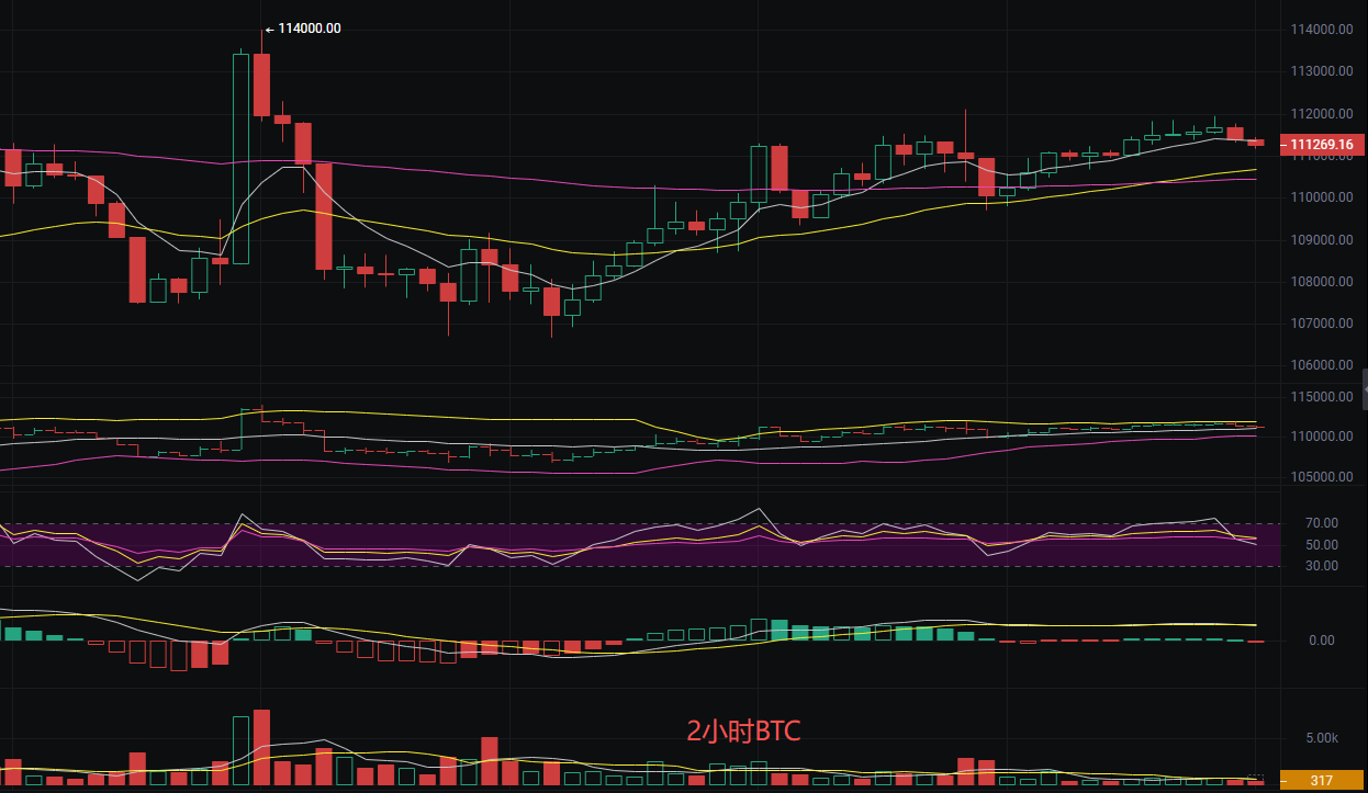 The current price of Bitcoin is 111280. Li Ying assesses that the trend for Bitcoin is upward, with strong technical performance. The key support level is solid, and technical indicators show a bullish arrangement, indicating that the price is likely to rise further in the short term. In particular, the bullish engulfing pattern and the golden cross of the moving average system have created a significant resonance signal, providing strong support for the bulls. Insufficient trading volume and market sentiment data may limit the sustainability of the trend, so it is essential to closely monitor the performance of resistance levels. The overall K-line shows a fluctuating upward trend with strong buying support at lower levels. The MACD momentum is weakening, and a short-term adjustment may continue. The EMA is diverging upwards, and the medium to long-term trend remains bullish. Li Ying observes that there is a standoff between bulls and bears around 111000, so it is likely that the market will move sideways during the day, suggesting a strategy of quick in-and-out trades for ultra-short-term positions.